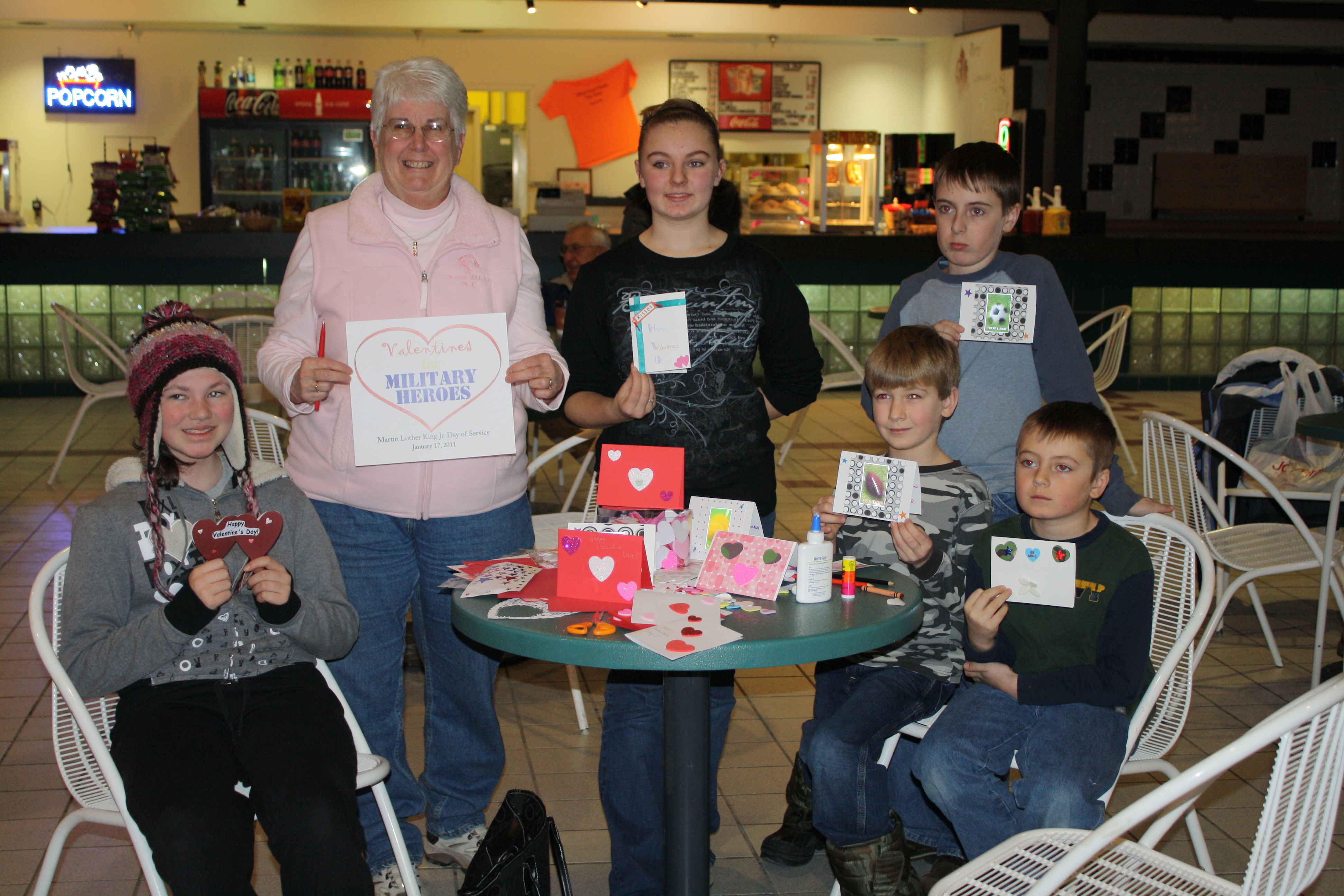 Their "Valentines for Military Heroes" (VfMH) service initiative (a first Day of Service and collaborative effort for these CNCS groups) involved schoolchildren, senior citizens, community organizations, military families and general public from Michigan's Upper Peninsula in creating Valentine cards and messages of encouragement for active duty military and veterans. The result: more than 5,000 Valentines were sent in late January to servicemen/women in Iraq and Afghanistan as well as other U.S. military bases and were delivered Feb. 14 to VA Hospital patients, veterans' home residents and regional veterans' service centers.