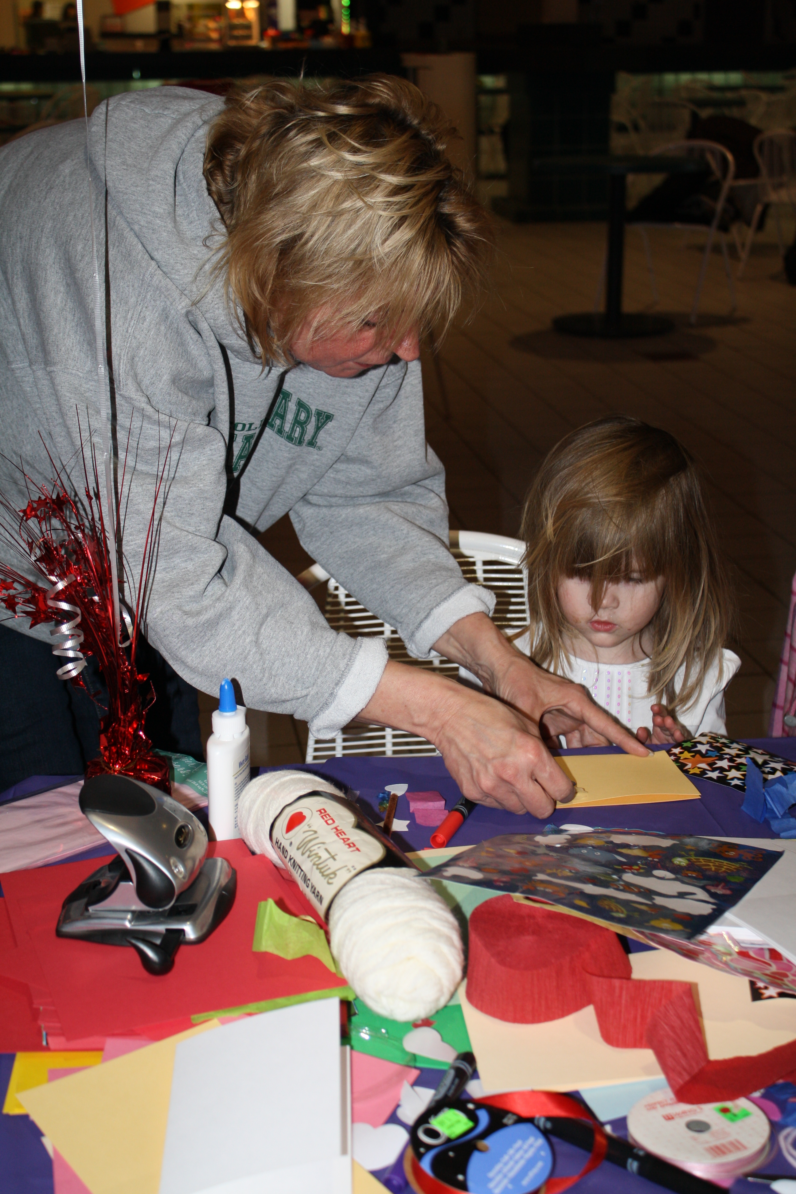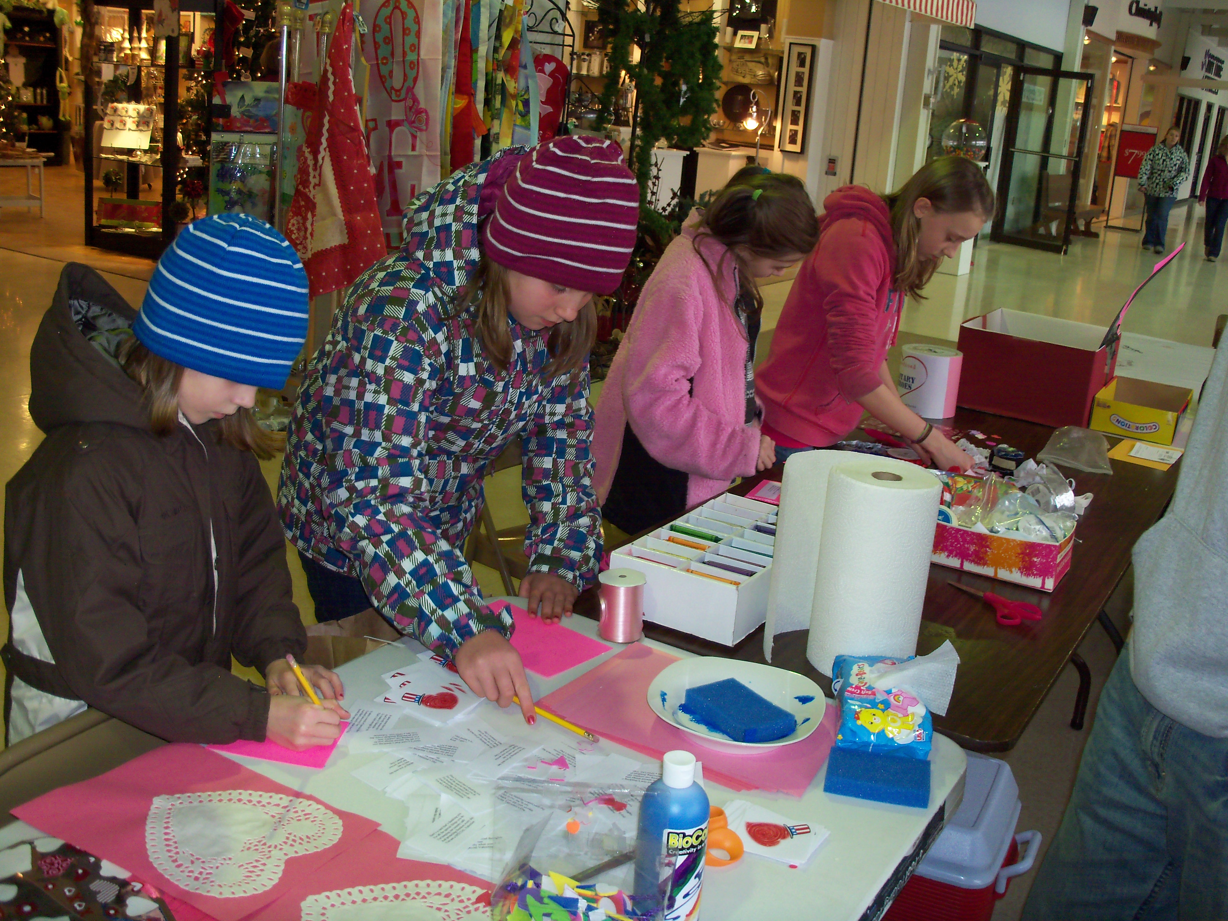 "VfMH" hosted three community Valentine-making events Jan. 17 in central U.P. counties (Delta, Dickinson, Menominee) that drew young and old alike. The project had its own distinctive logo (designed by Gearhart) and utilized the news media, social media (http://www.facebook.com/vfmh2011) and its own web site (a Gearhart product) to spread word of the project (resulting in inquiries from as far away as Connecticut!) and to involve other VISTA members serving in Upper Michigan.