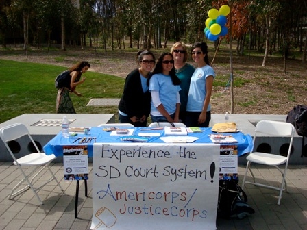 Each year, the California JusticeCorps program recruits and trains nearly 300 undergraduate college students to serve in the court’s legal access self-help centers. Our AmeriCorps provide information to people coming to court, but can’t afford an attorney to represent them. In California over 4 million people come to court each year attempting to navigate the legal system on their own to resolve issues pertaining to their family, housing and financial stability. Unfortunately, legal aid attorneys can’t come close to meeting the tremendous need for legal services—in fact, 2 of every 3 meritorious cases are turned away from legal aid assistance because of lack of resources. This is not just a California issue. National data indicates that 60 to 90 percent of family law cases nationally involve at least one party forced to represent themselves. The assistance JusticeCorps members provide is assistance people may not have received otherwise. It’s assistance that helps families move to a place of greater stability in their lives after divorce and custody disputes. It’s assistance that helps people avoid eviction. In the 2009-10 program year alone, across 6 counties, 285 JusticeCorps members assisted 60,000 litigants, provided 24,942 referrals to related services and helped to complete 38,900 legal forms.