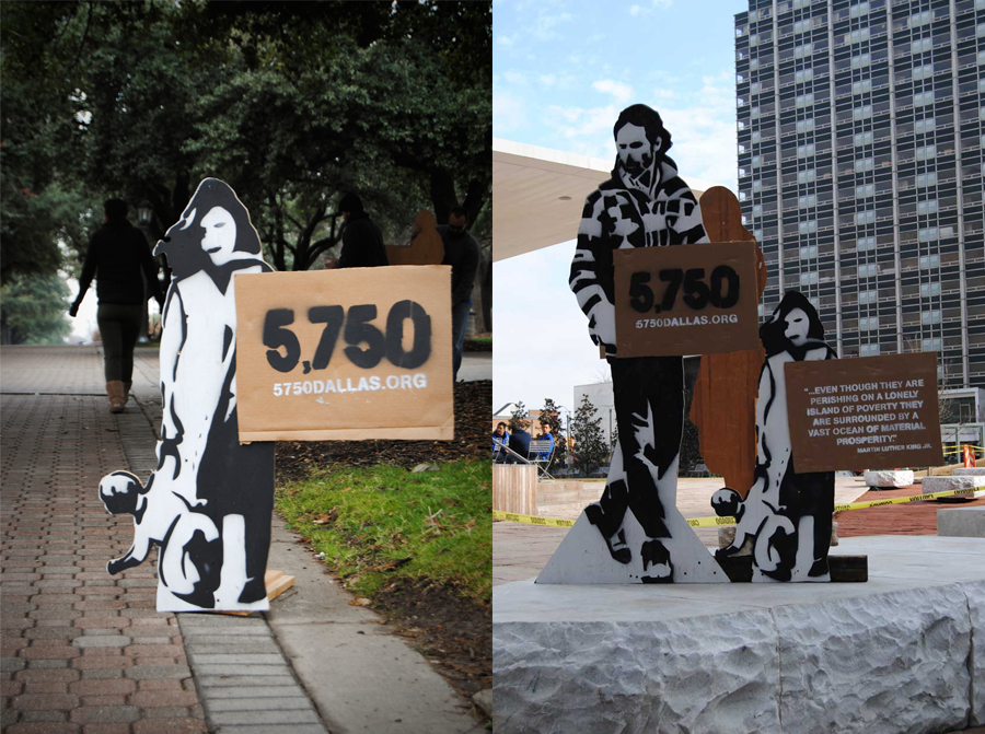 5750 is the official number of homeless men, women and children in Dallas. This year buildingcommunity WORKSHOP (bcWORKSHOP) honored Dr. Martin Luther King, Jr's birthday through an installation project promoting awareness of and advocating for a solution to the challenges our homeless citizens face every day.
