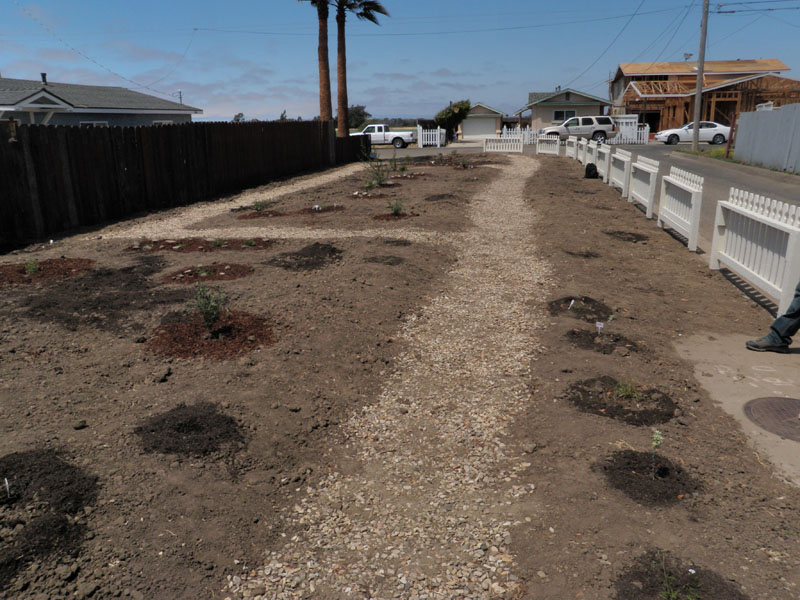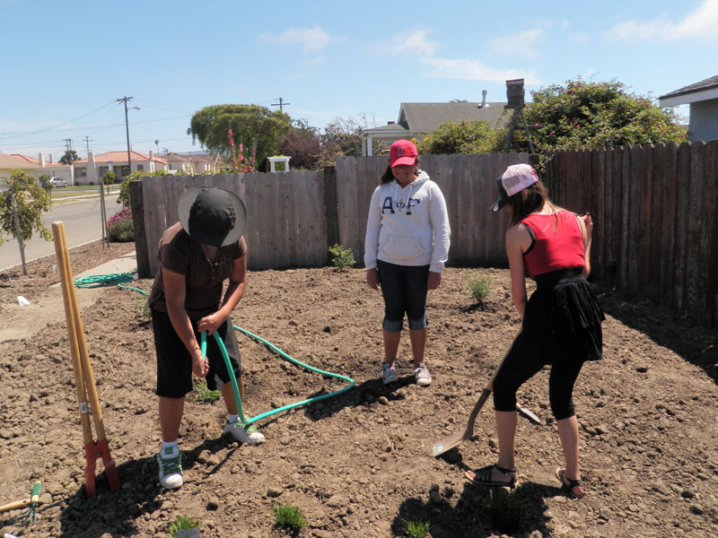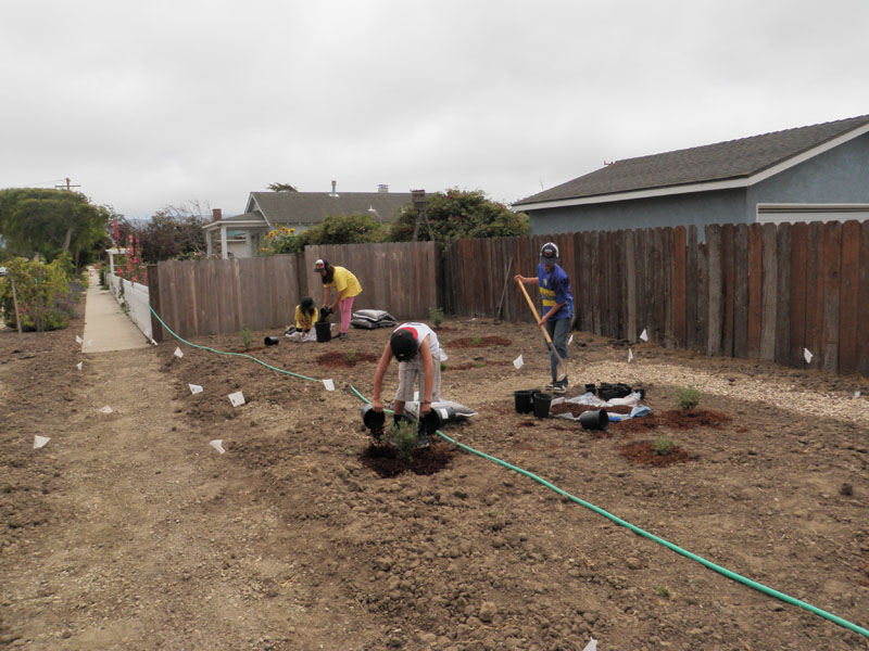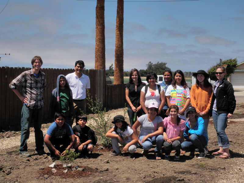 The FITS-SOS Guadalupe group, made up of 13 participants from 6th-9th grade, worked on a service-learning project that took place in an intersection on the corner of 7th Street and Campodonico in Guadalupe, CA with a one lane street that is open to two way traffic. Next to the intersection, there was a vacant, trash and weed filled city lot. Since there was no formal sidewalk, parents with children and strollers had to walk into oncoming traffic and be in danger of getting hit by a car. The group, having just learned the value of biodiversity, saw an opportunity to turn this unattractive and dangerous lot into a beautiful and safe native garden using what they had learned to promote biodiversity. They made it their goal to build this native garden and make their community a safer and more beautiful place to live in.